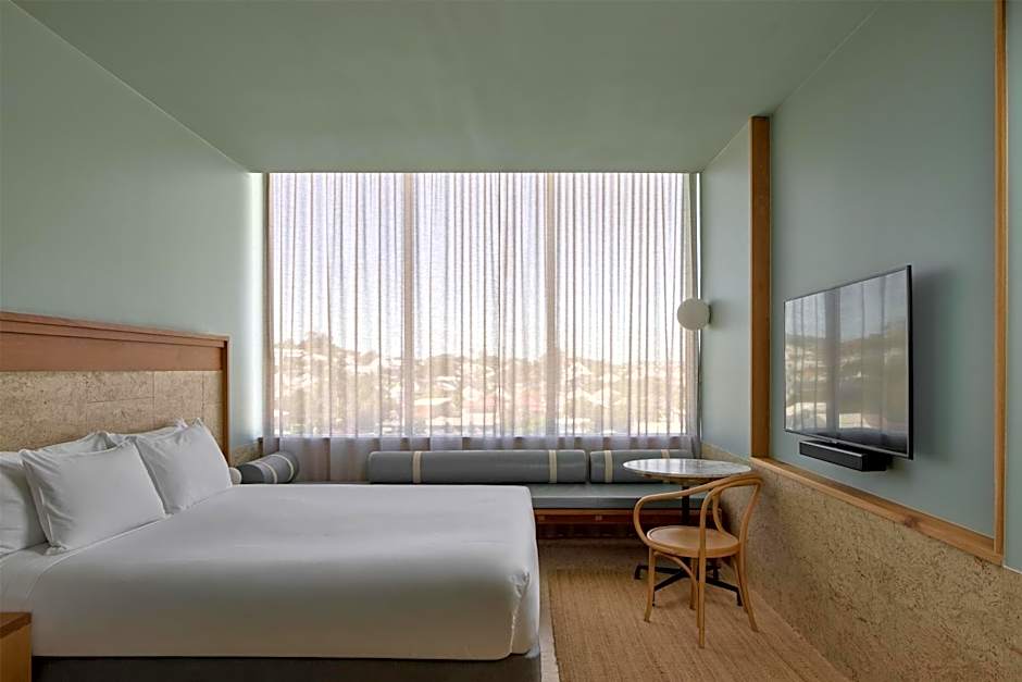 This contemporary room features a 3.3 ft² Juliette balcony with views of the local neighborhood, and modern features with natural finishes of marble, timber and brass.
